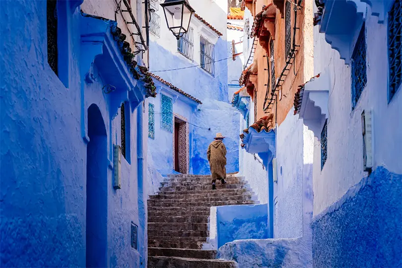 Ít thành phố nào có thể truyền cảm hứng cho du khách đặt chuyến đi chỉ dựa trên một bức ảnh, nhưng Chefchaouen, thị trấn miền núi phía bắc Morocco ngập tràn trong màu xanh, là một trong những nơi như vậy. Và lý do cho tất cả màu xanh lam này thậm chí còn đẹp hơn cả chính sắc thái dịu nhẹ đó. Vào thế kỷ 15, những người tị nạn Do Thái chạy trốn khỏi Tòa án dị giáo Tây Ban Nha đã sơn các tòa nhà màu xanh lam như một lời nhắc nhở về bầu trời và sức mạnh của Chúa trên cao. Trong những thế kỷ tiếp theo, cư dân vẫn duy trì truyền thống này.