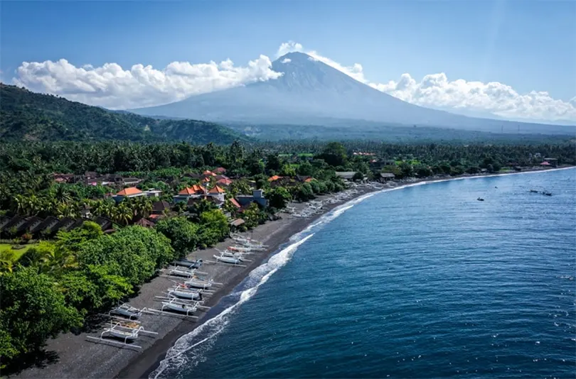 Travel + Leisure đề xuất Bãi biển Amed, nằm dọc theo bờ phía đông của hòn đảo, là điểm thu hút các thợ lặn do khung cảnh dưới nước phong phú của nó. Khu vực xung quanh có san hô nguyên vẹn và nhiều vụ đắm tàu. Không giống như một số bãi biển đông đúc hơn ở Bali, Amed mang đến cái nhìn chân thực về cuộc sống địa phương, nơi hoạt động khai thác muối và đánh bắt cá vẫn phổ biến, bằng chứng là có nhiều thuyền buồm nằm rải rác trên bãi cát đen.