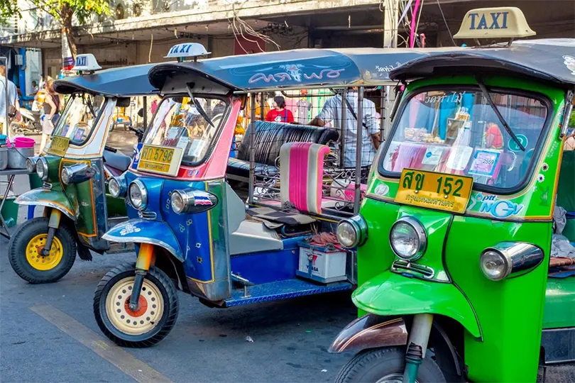 Bangkok không thiếu các phương tiện giao thông, cho dù đó là tàu điện ngầm, taxi hay sử dụng ứng dụng Grab để nhảy lên thùng sau xe tay ga và tránh đường. Tuy nhiên, cách thú vị nhất để đi lại là bằng xe tuk-tuk. Bạn có thể dễ dàng bắt xe ở những khu vực đông đúc, chẳng hạn như chợ hoa hoặc Cung điện lớn, hoặc thay vào đó, bạn có thể bỏ qua các cuộc đàm phán và đặt trước, sử dụng chúng như một cách để tham quan thành phố, ngắm cảnh vào ban ngày hoặc thưởng thức đồ ăn đường phố và quán bar vào ban đêm.