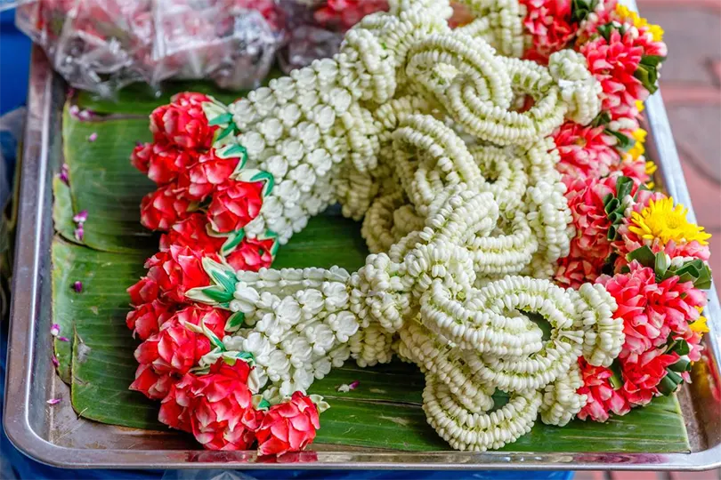 Chợ Pak Khlong — chợ hoa lớn nhất của Bangkok — sẽ khiến bất kỳ chợ nào khác mà bạn từng thấy trở nên vô nghĩa. Không gian rộng lớn, có mái tôn này mở cửa 24 giờ và chật kín các gian hàng hoa chất đầy mọi thứ, từ vòng hoa nhài thơm ngát đến hoa hồng đỏ thẫm. Nhiều gian hàng được sử dụng để cúng dường tại các ngôi đền gần đó; những bó hoa khác dành cho đám cưới hoặc trưng bày tại các khách sạn sang trọng. Đừng bỏ lỡ những người bán hàng rong dọc theo các con phố xung quanh, bao gồm cả Đường Chakkaraphet.