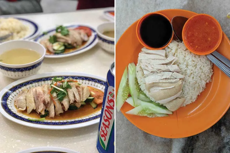 Món ăn này không chỉ được người dân địa phương vô cùng yêu thích mà còn thường được coi là món ăn quốc gia của Singapore! Người dân địa phương yêu thích món ăn này và một số trung tâm bán hàng rong nổi tiếng với phiên bản của họ, cả người dân địa phương và khách du lịch đều xếp hàng dài. Nguồn gốc của món ăn này có thể bắt nguồn từ cộng đồng người Hải Nam và Quảng Đông di cư nhưng ngày nay nó có lẽ là món ăn mang tính biểu tượng nhất khi nói đến ẩm thực Singapore. Đó là một đĩa cơm và gà luộc đơn giản được nấu trong nước luộc gà hoặc nước dùng, kèm theo nước dùng bổ sung, một ít tương ớt và một ít dưa chuột. Nó lành mạnh, thơm ngon và xứng đáng với mọi sự cường điệu.