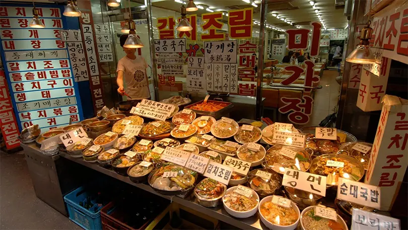 Nếm thử các món ăn Hàn Quốc đích thực là điều bắt buộc khi đến chợ ở Seoul và thật may mắn, Chợ Namdaemun là nơi có rất nhiều nhà hàng, quán cà phê và quán ăn lớn nhỏ, nơi bạn có thể thưởng thức một bữa ăn trong khi ngắm nhìn đám đông đi qua. Có ba con phố ẩm thực chính để khám phá ở đây, bao gồm Phố ẩm thực, còn được gọi là Phố ẩm thực, Hẻm Kalguksu và Hẻm Galchi Jorim, còn được gọi là Hẻm cá đuôi ngựa.