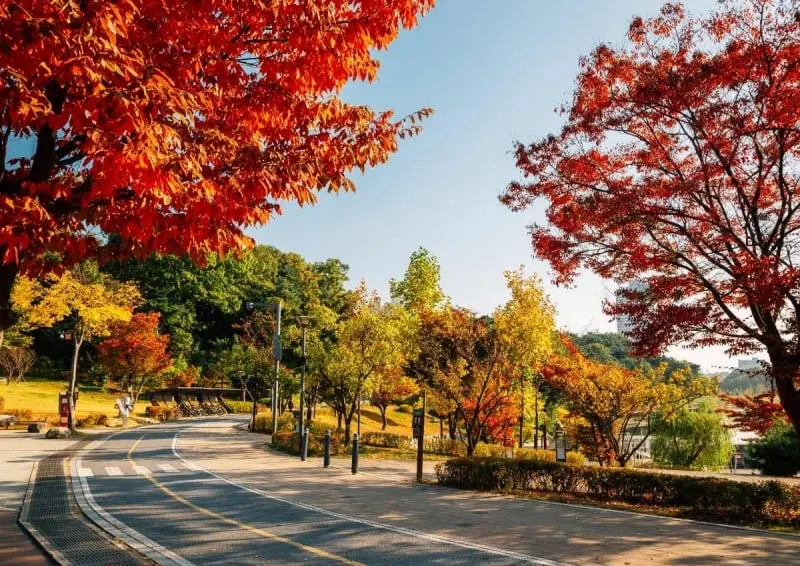 Quả thực, Công viên Hồ Gwanggyo là một nơi tuyệt đẹp để đi dạo thư giãn giữa thiên nhiên trong lành. Những tán lá mùa thu ở đây sẽ phù hộ cho đôi mắt của bạn. Hơn nữa, công viên còn nổi bật với cảnh đêm tuyệt đẹp và bầu không khí lãng mạn khi khu vực này được chiếu sáng với nhiều màu sắc khác nhau vào ban đêm.