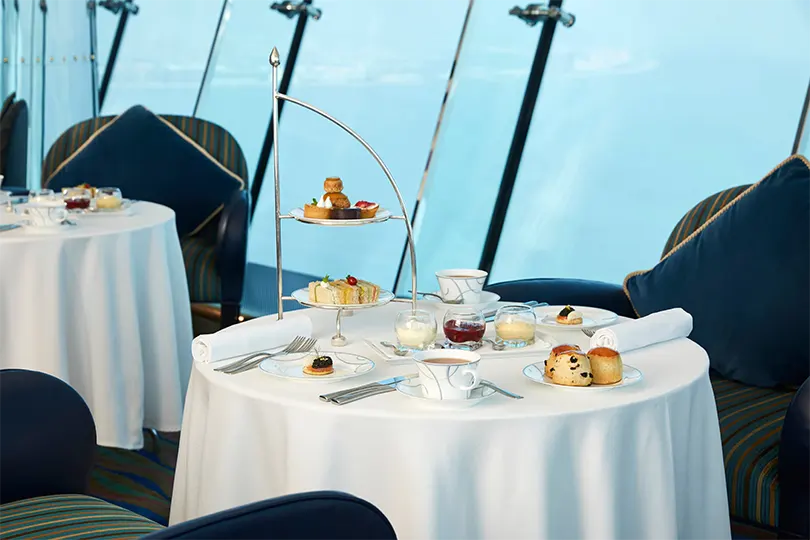 Thưởng thức bữa trà chiều tinh tế tại Skyview Lounge, Jumeirah Burj Al Arab. Các đầu bếp nổi tiếng sẽ mang đến một bản giao hưởng hương vị, từ King Crab Tartelettes mặn đến Mango Flower Rolls tinh tế, tất cả trong khi bạn đắm mình trong khung cảnh hoàng hôn ngoạn mục trên Vịnh Ả Rập.