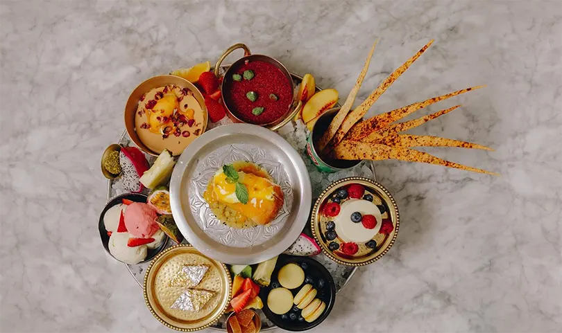 Trải nghiệm trà chiều theo phong cách Ấn Độ đầy sáng tạo tại Tandoor Tina’s, nổi tiếng với những sáng tạo vui nhộn của giám đốc ẩm thực Trisha Singh Henault. Được phục vụ trong hộp hành lý màu hồng Jaipur rực rỡ, hãy thưởng thức các món ăn như bánh sandwich cá hồi hun khói, samosa và nhiều loại trà hoặc cocktail sáng tạo để thưởng thức hương vị miền bắc Ấn Độ.