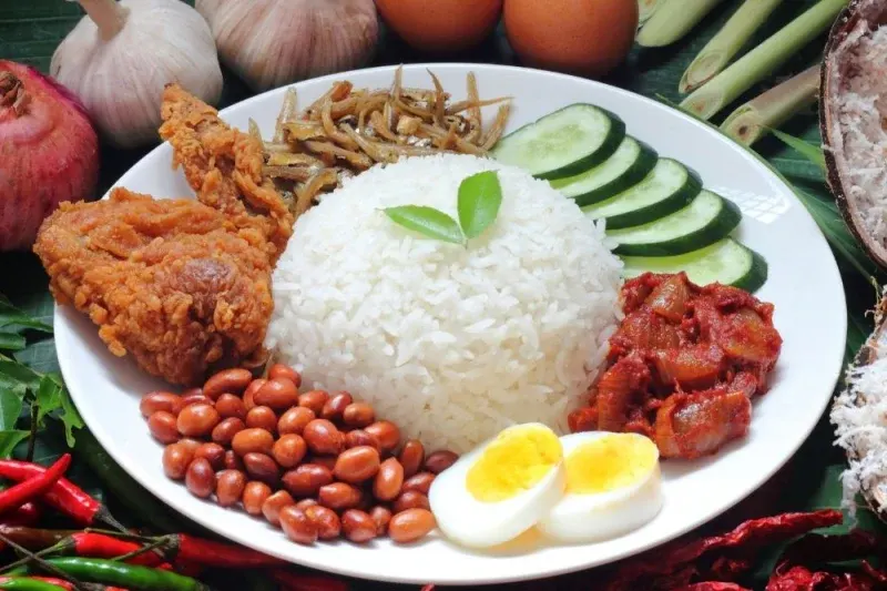 Nói về món ăn địa phương nhất định phải thử, nasi lemak thường được xếp vào hàng đầu. Đây là món ăn quốc gia của Malaysia có cơm nước cốt dừa thơm lừng ăn kèm với sambal, cá cơm, đậu phộng, trứng và dưa chuột.
