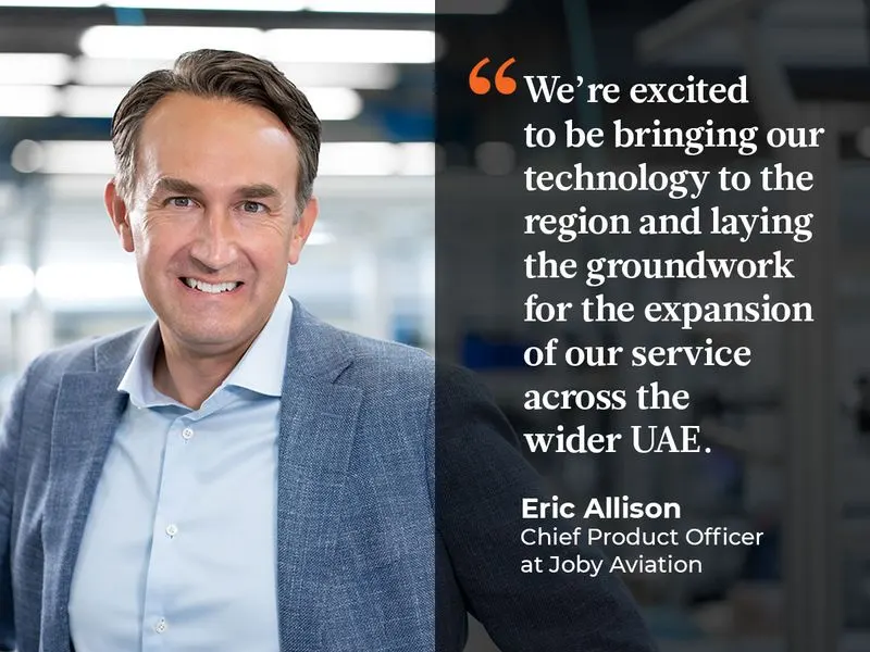 Eric Allison, giám đốc sản phẩm của Joby cho biết: “Chúng tôi rất vui mừng được đưa công nghệ của mình đến khu vực và đặt nền móng cho việc mở rộng dịch vụ của chúng tôi trên khắp UAE, nơi chúng tôi coi là thị trường tiềm năng tuyệt vời cho công nghệ của mình”. Hàng không, cho biết trong một cuộc phỏng vấn với Gulf News.