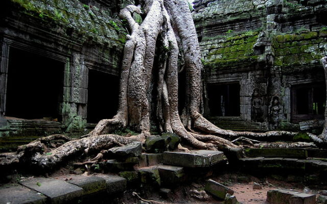 Các bạn xem phim Tomb Raider chưa, do nữ diên viên Angelina Jolie đóng ấy, chính là nơi này, ở quần thể đền Angkor, niềm tự hào bất diệt của người dân Campuchia. Ở phần một tôi mô ta cho các bạn về cuộc sống hai bên đường của người dân, nghèo khổ, nhà sàn thậm chí trường học, cơ sở y tế ít ỏi, an toàn giao thông bát nháo….. Và so với những quy củ hoành tráng của quần thể đền Angkor thì đó là một so sánh quá khập khiễng, bởi theo thời gian chỉ có phát triển chứ không lụi tàn, thế nhưng sự lụi tàn đã xảy ra.