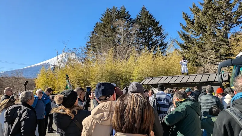 Tuy nhiên, hướng dẫn viên đã cung cấp cho chúng tôi nhiều thông tin hơn về núi lửa và cả về cảnh báo động đất và sóng thần ở Tokyo, điều mà tôi rất cảm kích. Cô ấy cũng đề cập rằng bạn có thể uống nước từ tuyết của Núi Phú Sĩ tại địa điểm chúng tôi đến bằng bình nước của riêng bạn hoặc bạn có thể mua một bình nước với giá 200 Yên (1,33 USD) bằng tiền mặt.