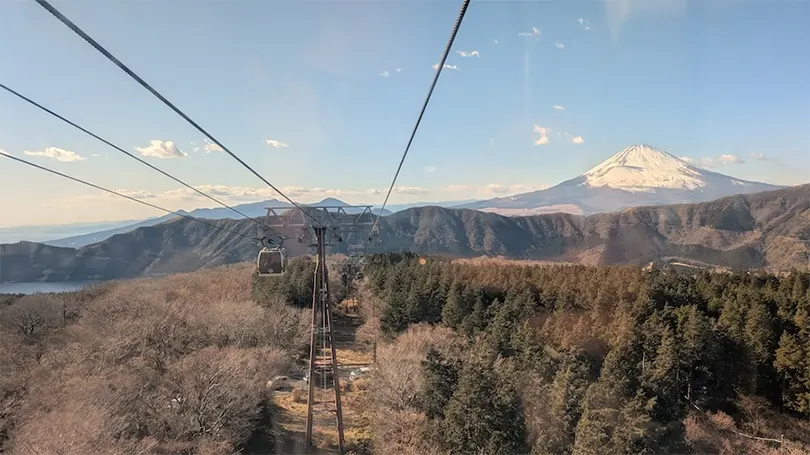 Sau đó, hướng dẫn viên du lịch chỉ đường cho chúng tôi lên cáp treo và nói với chúng tôi rằng địa điểm tốt nhất để ngắm Núi Phú Sĩ là ở phía bên phải của cáp treo. Chúng tôi lên xe và có hướng dẫn bằng âm thanh rất rõ ràng về trạm chúng tôi cần xuống (điểm dừng thứ hai), điều mà tôi rất thích.